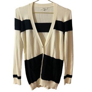 MADEWELL Inlet Cardigan Sweater Black White Stripe Button Down Size Small