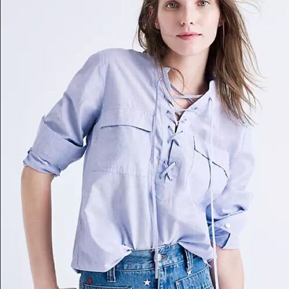 MADEWELL Lace up Shirt in Blue, size XXS - EUC
