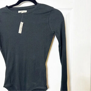 MADEWELL Ribbed Crewneck Full-Coverage Bodysuit Black Long Sleeve Ribbed XXS