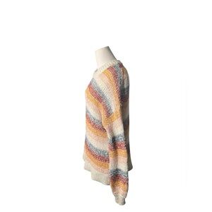 Fuzzy as a puppy and just as cute in pretty muted stripes, this relaxed sweater has a loose open stitch- so it's both cozy and breathable. Wear it with momjeans for an effortless fall look. Do Well: We partner with the Better Cotton Initiative to improve cotton farming globally.