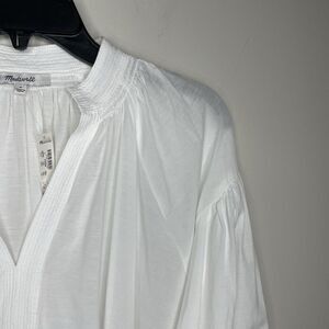 MADEWELL Top Women Small White Shirred Blouse Long Sleeve NQ888