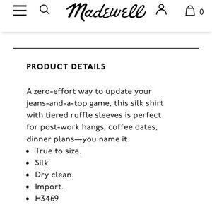 MADEWELL WATERLILY SILK RUFFLE BLOUSE NWT