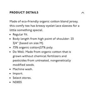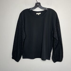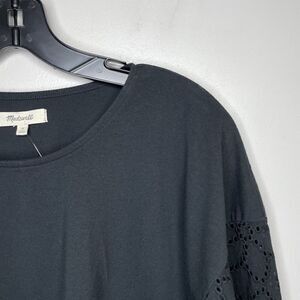 MADEWELL Womens Black Eyelet-Sleeve Tee NEW $69 Cotton-Blend ND855 Medium M