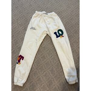 Get ready to lounge in style with these super comfy MADHAPPY Local Optimist sweatpants! These pants are in excellent condition and have been gently used. The white/tofu color is versatile and will match any top. Don't miss out on the chance to add these trendy sweatpants to your wardrobe!