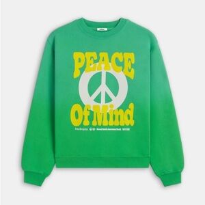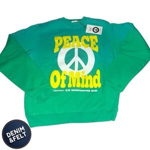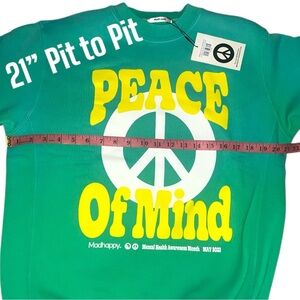Embrace positivity and good vibes with this Madhappy Peace of Mind Crewneck Sweatshirt. This green, size small sweatshirt features a bold, retro-inspired "Peace of Mind" graphic with the iconic peace symbol, promoting mental health awareness.
