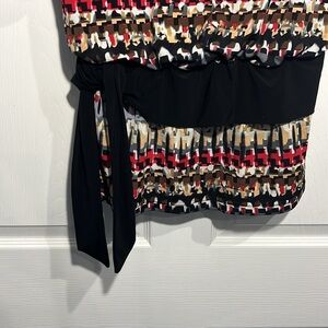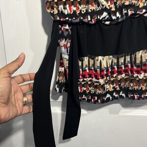 MADISION LEIGH Woman's Round Neck, Short Sleeves, Multicolor Top - Size 6. PTP: 18”. Attached waist tie.