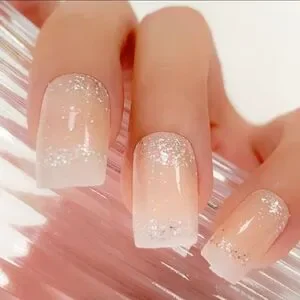 Elegant press-on nails with glitter French tips. Perfect for a chic look.