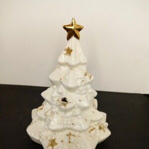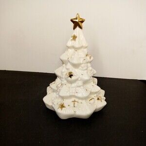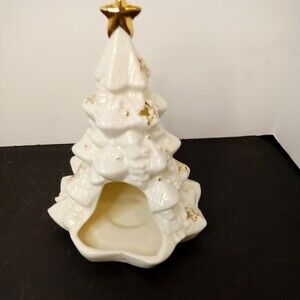 MADISON AVENUE CHRISTMAS TREE TEALIGHT HOLDER GLAZED BISQUE.