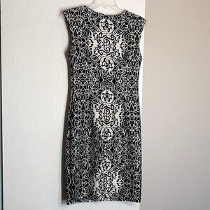 MADISON LEIGH Black/White Sleeveless Pencil Dress; Knee Length: Size 6