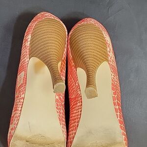 MADISON MALIA ROUND TOE SLIP-ON WOMEN"S HIGH HEEL TWO TONE WOMEN"S SHOE SIZE 7 COLOR ORANGE, BEIGE MADE WITH ALL MAN MADE MATERIALS HEEL HEIGHT MEASUREMENTS APPROX 4"INCHED THIS ITEMS IS PRE-OWNED EXCELLENT CONDITION WITH ONLY LIGHT SIGNS OF WEAR IF ANY CHECK THE PICTURES (FYI THE FIRST PICTURES IS JUST A MODEL TO SHOW WHAT THE SHOE LOOK ON CHECK THE PICTURES)