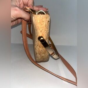 MADISON WEST Cork Crossbody W/ Handle Bag Vegan Leather Tan/Gold 3 Pocket