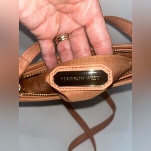 MADISON WEST Cork Crossbody W/ Handle Bag Vegan Leather Tan/Gold 3 Pocket