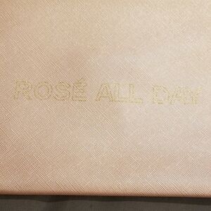 Blush shimmer pink with muted gold letters