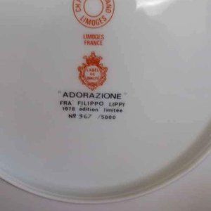 THIS VINTAGE LIMITED EDITION NUMBERED PLATE IS VERY RARE HAVE ONLY SEEN 1 OTHER BEING SOLD. THIS PLATE IS NUMBERED 967/5000. THE ARTIST IS FRA FILLIPO LIPPI MADE IN 1978 AND IT WAS DONE FOR THE CH FIELD HAVILAND LIMOGE DONE IN THE OLD EUROPEAN STYLE AND COLORS. THIS ART WORK IS FROM ONE OF THE MASTERS.