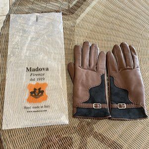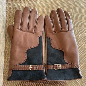 MADOVA LEATHER GLOVES 100% CASHMERE LINED SIZE 7 WOMEN'S MEDIUM BROWN W/SUEDE & BUCKLE - BRAND NEW - GORGEOUS!