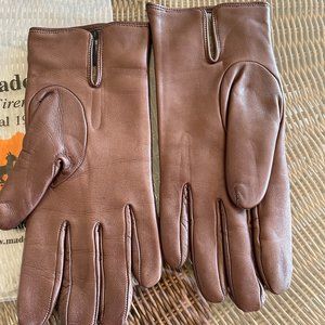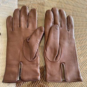MADOVA LEATHER GLOVES 100% CASHMERE LINED SIZE 7 WOMEN'S MEDIUM BROWN W/SUEDE &