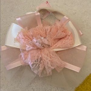 Adorable pink and cream lace dress with beautiful rhinestone tulle headband! Perfect for a gift.