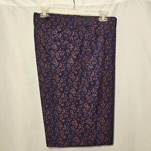 MAELREG | Mens Performance Proflex Navy Blue with Maroon Paisley Design Golf Shorts | 4-pocket | Zip fly & button front closure | Beltloops | Stretch | Water resistant | Excellent pre-loved condition | Size 40