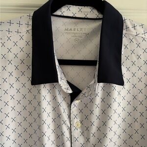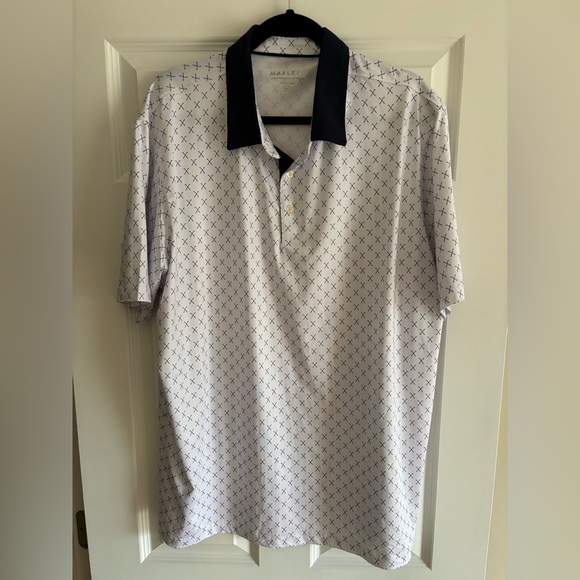 Performance polo with golf club design in navy and white. Like new, poly spandex construction. Size XXL