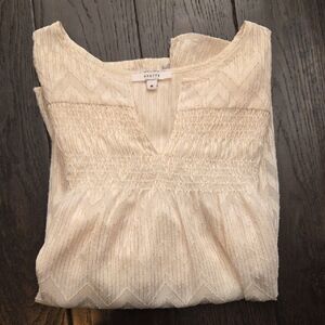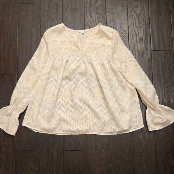 MAETTE BLOUSE LONG BELL SLEEVE V-NECK WHITE/GOLD SHIMMER TUNIC MEDIUM