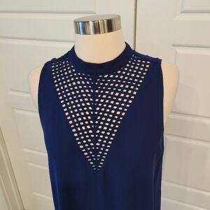 MAETTE WOMEN'S BLUE SLEEVELESS V NECK DESIGN TOP SIZE LARGE
