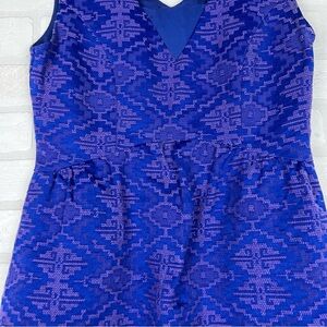 MAEVE - ANTHROPOLOGIE Blue Purple Averie Jacquard Aztec Fit & Flare Dress Size 2. It features a blue, textured fabric with an Ikat print, a V-neckline, and a fit-and-flare silhouette. The dress is sleeveless and falls to a midi length. Maeve is a brand exclusive to Anthropologie, known for its structured yet delicate designs. The brand's clothing is often described as refined, flattering, and incorporating playful yet polished vibes This elegant blue sleeveless dress is perfect for any occasion. Its classic design offers a flattering fit and timeless style. Brand: Maeve - Anthropologie, Market: Women’s, Size: 2 Color: Blue, Purple, Style: Women’s beautiful sleeveless fit & flare dress features: Textured, Aztec design, Back v-neckline, Two pockets! Minor pleating at waist, Hidden side zipper, Fully lined, Approx Measurements (laying flat): Length - 35” Chest - 16.75” Waist - 14.5” Condition: Great preloved condition!! #870 15.5