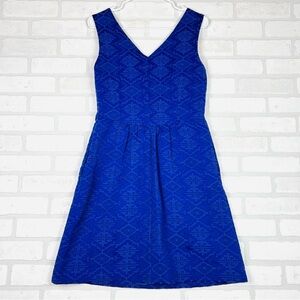 MAEVE - ANTHROPOLOGIE Blue Purple Averie Jacquard Aztec Fit & Flare Dress Size 2