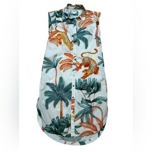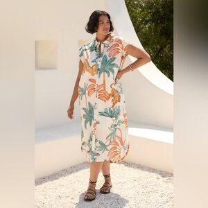 MAEVE ANTHROPOLOGIE Cap Sleeve Button Front Midi Dress Neutral Motif XXSP