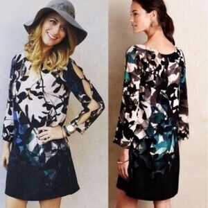 MAEVE ANTHROPOLOGIE Multicolor Print Dress w/ slitted Sleeves
