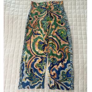MAEVE ANTHROPOLOGIE Womens Pants Rhiannon Satin Cropped Flare Bohemian Artsy