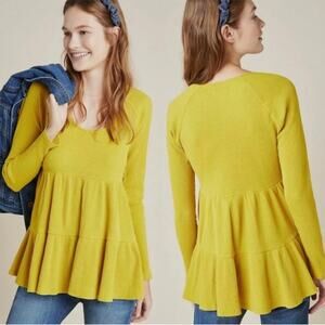 - MAEVE | ANTHROPOLOGIE Women's XS Samina Thermal Tiered Long Sleeve Babydoll Top -