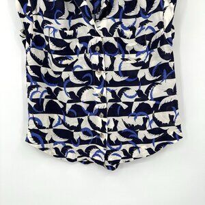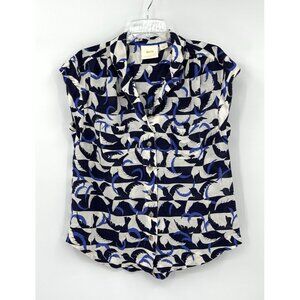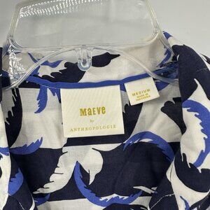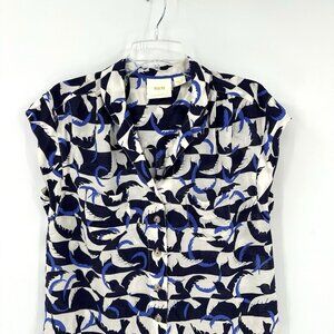 MAEVE ANTHROPOLOGIE shirt top blouse sleeveless button up birds blue MEDIUM