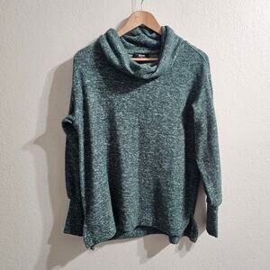 Super soft green cowl neck sweater with cuffed sleeves and split sides.. Size S.
