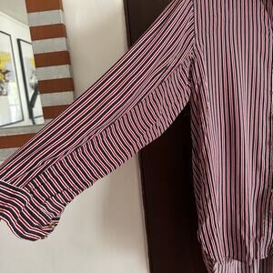 MAEVE | Anthropologie Adelaide Poplin Blue & Red Striped Button Down | Sz Large