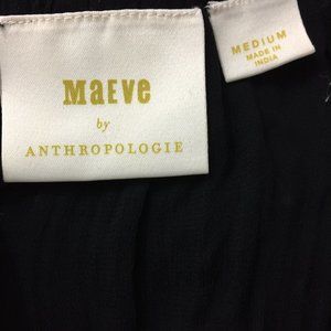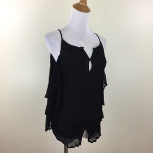 MAEVE Anthropologie Black Crepe Chiffon Cold Shoulder Ruffle Sleeve Button Shirt