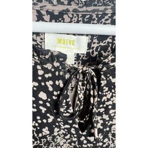 The MAEVE Anthropologie JACQUIN PEASANT Animal Print shimmer Viscose Blouse in size XS is a stylish and versatile top perfect for various occasions. Featuring a V-neckline, 3/4 balloon sleeves with ruffle accents, and a tie closure, this blouse is made of lightweight and breathable viscose fabric. The animal print pattern in black adds a touch of bohemian flair, while the relaxed fit and tunic style make it a comfortable and chic choice for all seasons. Ideal for travel, parties, or casual outings, this blouse is a must-have for any fashion-forward woman.