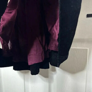 Black velvet graces the bib and hem of this patchwork dress for a tactile richness that suits the season.