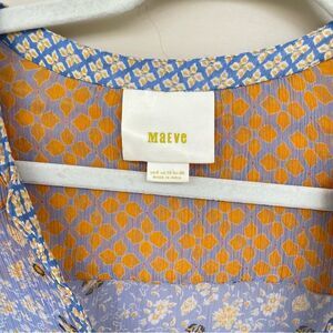 Add a touch of bohemian elegance to your wardrobe with this MAEVE Anthropologie Morning Glory Lilac Sheer Tunic Dress. Featuring a beautiful lilac color and a delicate sheer fabric, this dress offers a flowy and feminine look. The tunic style is both comfortable and stylish, perfect for warm weather days. The MAEVE brand from Anthropologie is known for its unique and artistic designs. *NOTE: There is a small, well repaired imperfection in the shoulder (pictured). A fabric patch and matching thread have been used, and the imperfection is barely noticable when worn.*