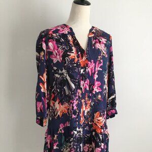 MAEVE Anthropologie Multi-Color Floral Print 3/4 Sleeve Pleats Dress/Long Shirt