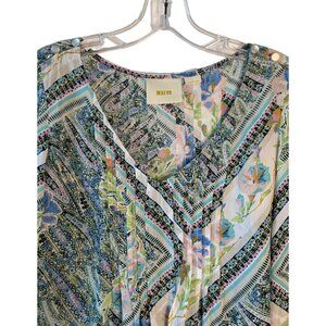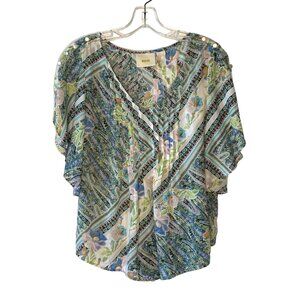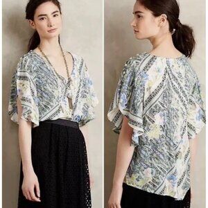 Maeve Anthropologie Multicolor Floral Flutter-Sleeve Maya Short Sleeve Blouse
