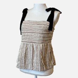 MAEVE Anthropologie Soeli Textured Ribbon Tie Shoulder Bow Sleeveless Top Small