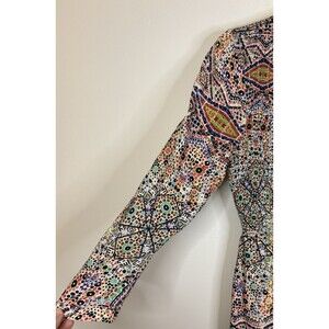 MAEVE Anthropologie Tiled Amethyst Mini Dress XS Petite Smocked Long Sleeve Boho