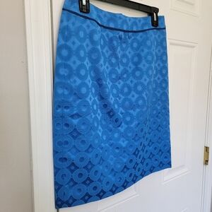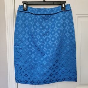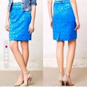 MAEVE Anthropologie Turquoise Blue Sadie Pencil Skirt Circle Pattern Size 6