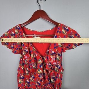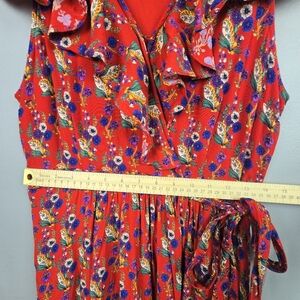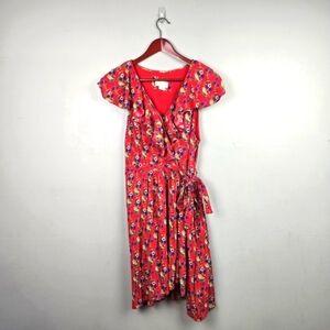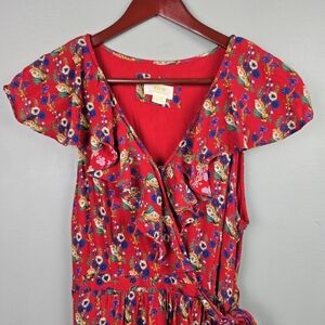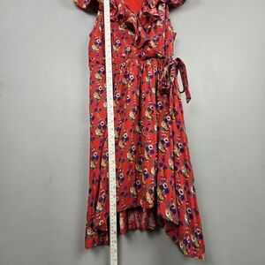 MAEVE BY ANTHROPOLOGIE Rosalia Wrap Dress Ruffled Floral Red Womens Size 12