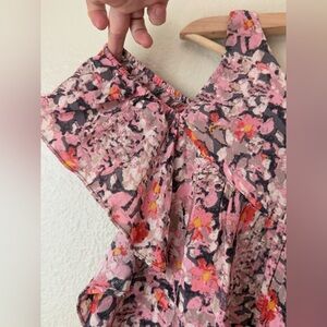 Maeve Anthropologie Blouse Pullover Top Cut Out Bell Sleeve Floral Pink Sz S