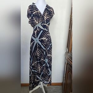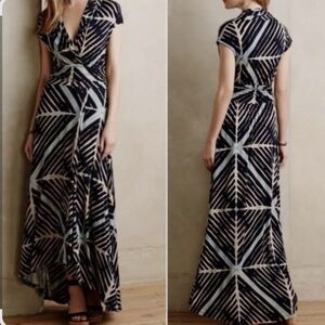 MAEVE By Anthropologie, Elegant Blue and Tan Patterned Maxi Dress.Size XS