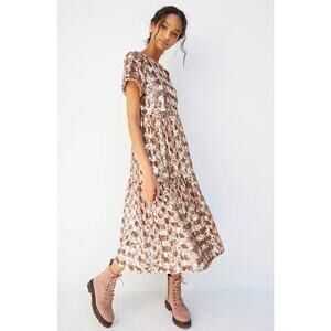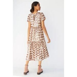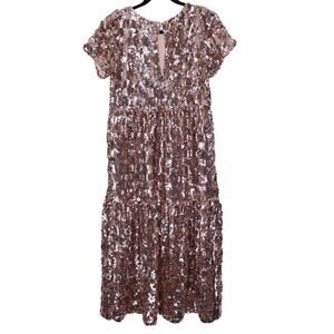 MAEVE NEW Bernadette Sequined Midi Dress Pink Rose Tiered Lined Women's XS