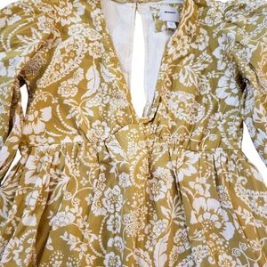 MAEVE Olive Mustard Floral Bubble Dress XS