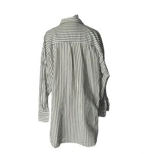 MAEVE - Oversized Classic Striped Button-Down Shirt – Olive & White - Small