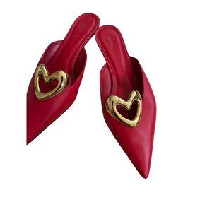 MAEVE Red Leather Gold Heart Mules Heels Size 40 / 10